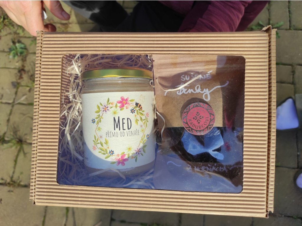 V menším balíčku dobrot z Horňácka najdete květový med přímo od vinaře a sušené bio trnky z našich sadů.