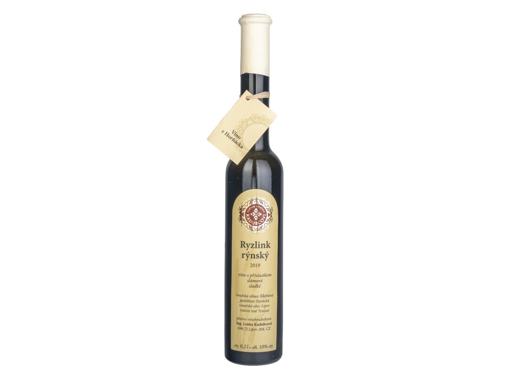 Výroba: Dne 18.10.2019 jsme ve vinici Trstěné sklidili pouze ty nejvyzrálejší hrozny Ryzlinku rýnského. Ty po dobu 3 měsíců přirozeně vysychaly tak, že nám při lisování daly malé množství moštu o cukernatosti 36 °NM.